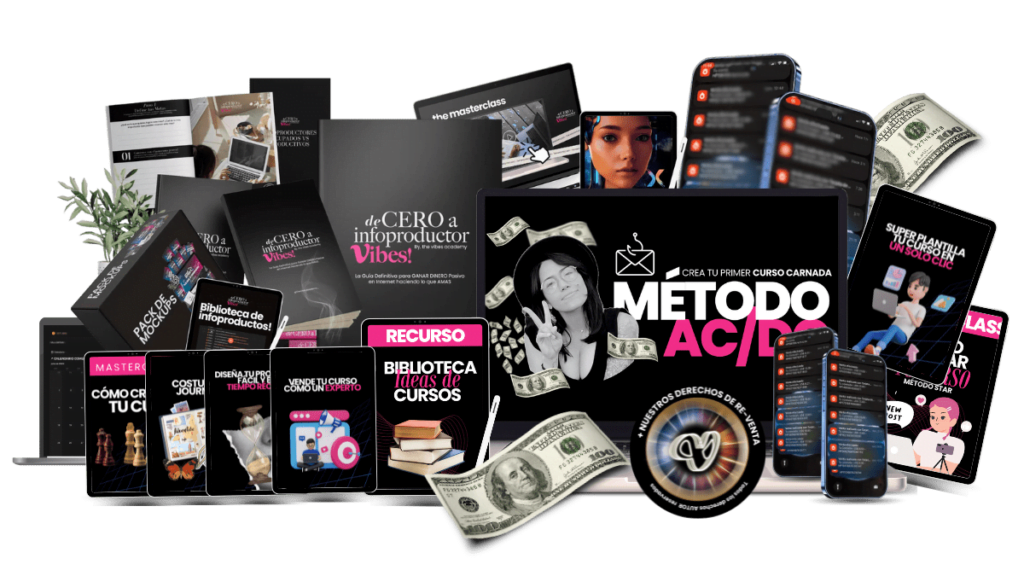 De Cero a Infoproductor Vibes! Es una ruta clara paso a paso, fácil de replicar con cada nueva idea de infoproducto, que te permite generar ingresos PASIVOS mes tras mes gracias a tus conocimientos, habilidades, hobbies, o talentos, sin tener que tener experiencia o conocimientos previos.